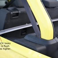 The tonneau is gentle on your Jeep, so you won't hesitate to remove it anytime. Front and Rear roofs each Flip-Open or roll forward. Corner Towers are now super light weight. Window zips to the ceiling roll bar cover. All hardware included. Quick Bolt-on. Made of the same Chrysler Black Diamond Sailcloth Vinyl Jeep Topping. Proper DOT Black Smoked Window.
